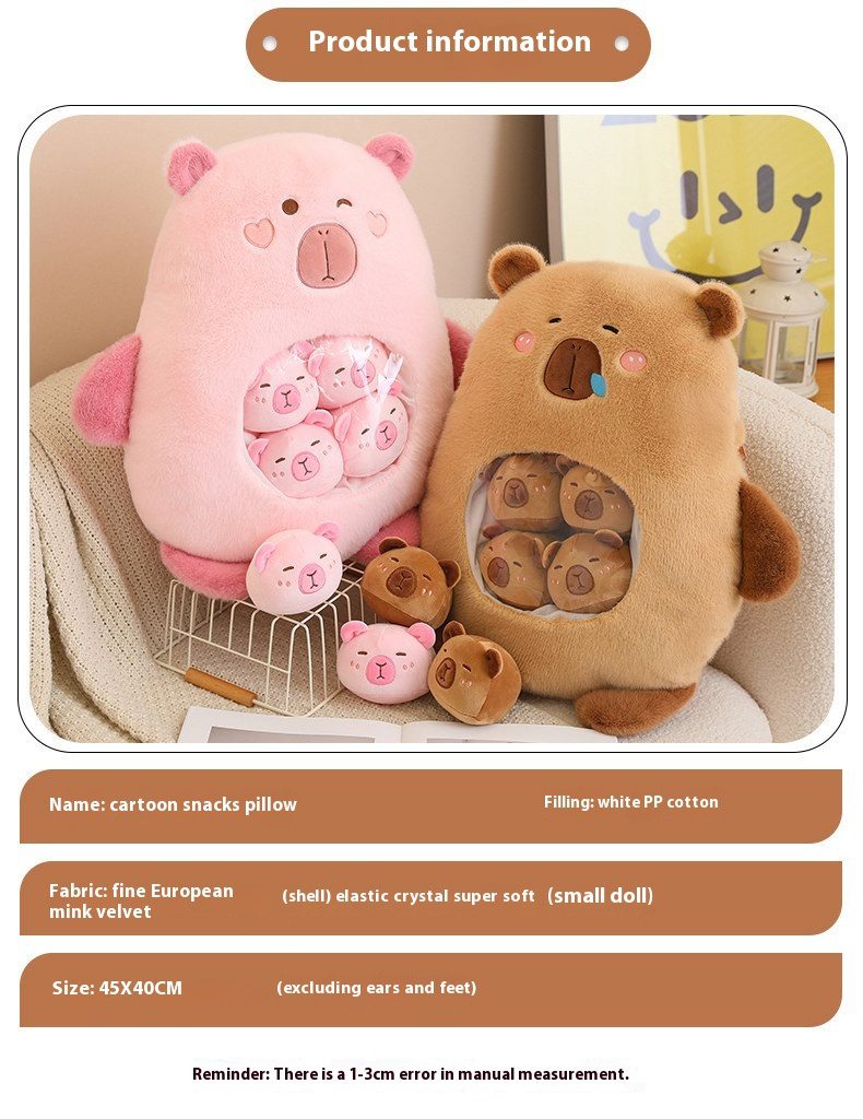 - Capybara plush toy made from soft-touch velvet and cotton