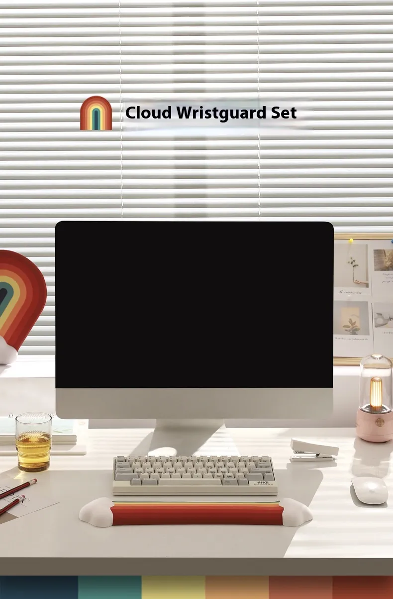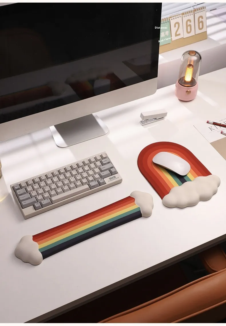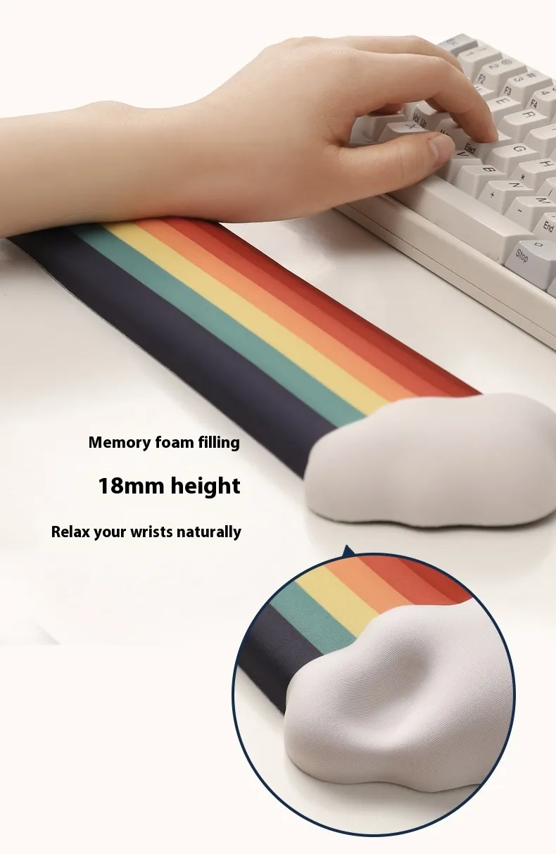 - Includes: 1 Cloud Wrist Rest + 1 Rainbow Mouse Pad