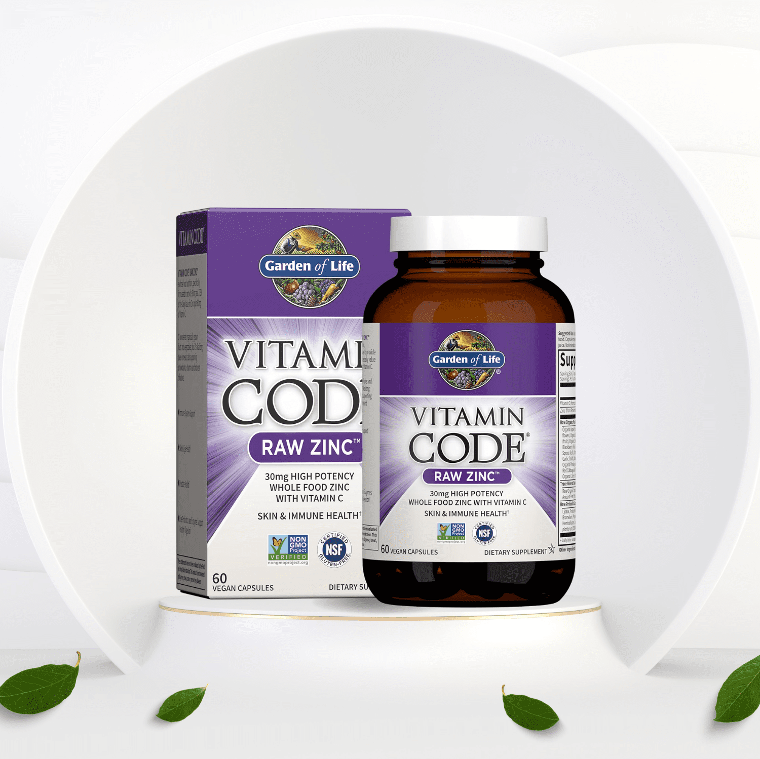 Vitamin Code® Raw Zinc™ delivers whole food zinc in its purest form—30 mg of high-potency zinc paired with 60 mg of vitamin C, all derived from real, organically grown fruits and vegetables. This vegan-friendly supplement is designed to support immune function, skin health, and overall vitality.